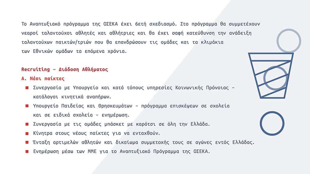 The main titles’ and key point graphics for the power point presentation FUNDING AND PROMOTIONAL PROGRAM FOR OSEKA were created in 2017 by Elpida Panourgia, on behalf of One9Six Advertising Company in Athens, Greece. The objective behind the creation of the presentation and its illustrations, was to present in a visually pleasing and understandable way all the main points of the key suggestions about the financial and promotional strategies that the OSEKA company should follow in order to achieve functionality and prosperity in the future.